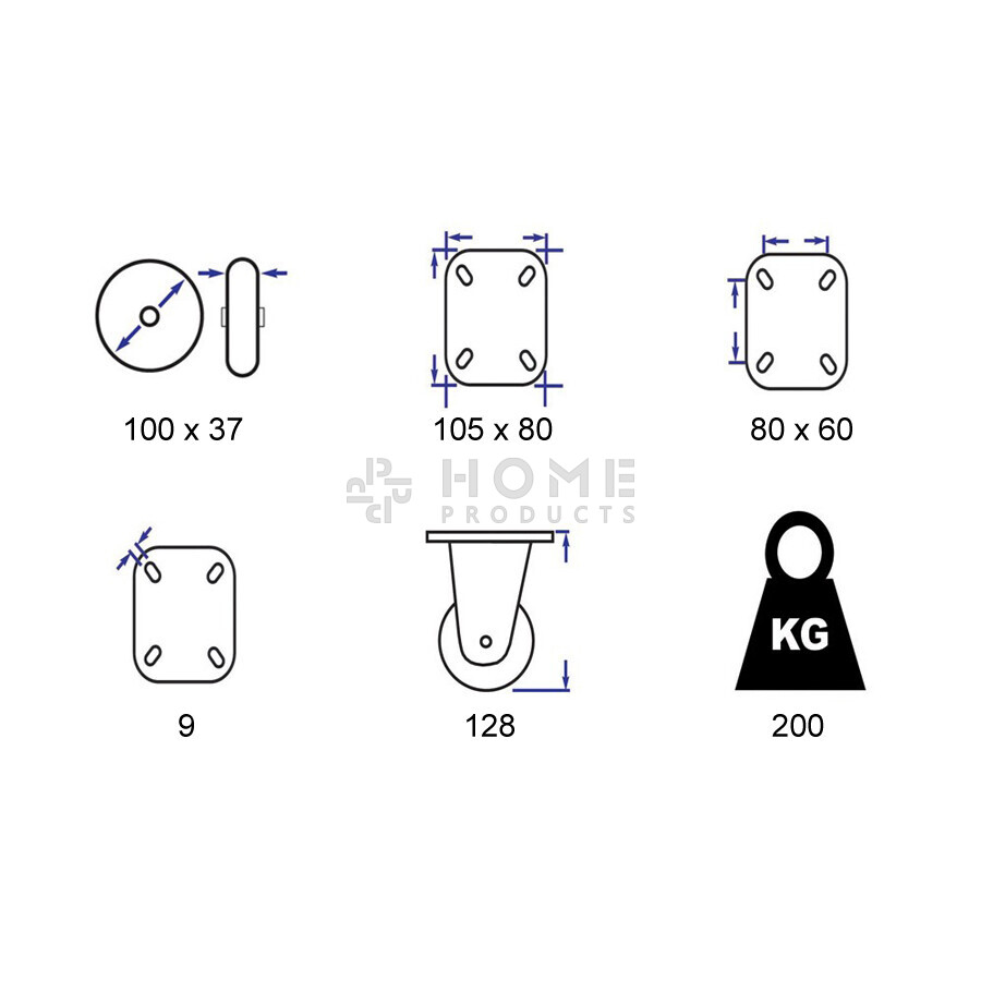 Applications: Industrial trolleys, material handling in factories, waste containers, transport containers, metal and chemical companies, roll containers for medium loads, tool trolleys, warehouse trolleys.
