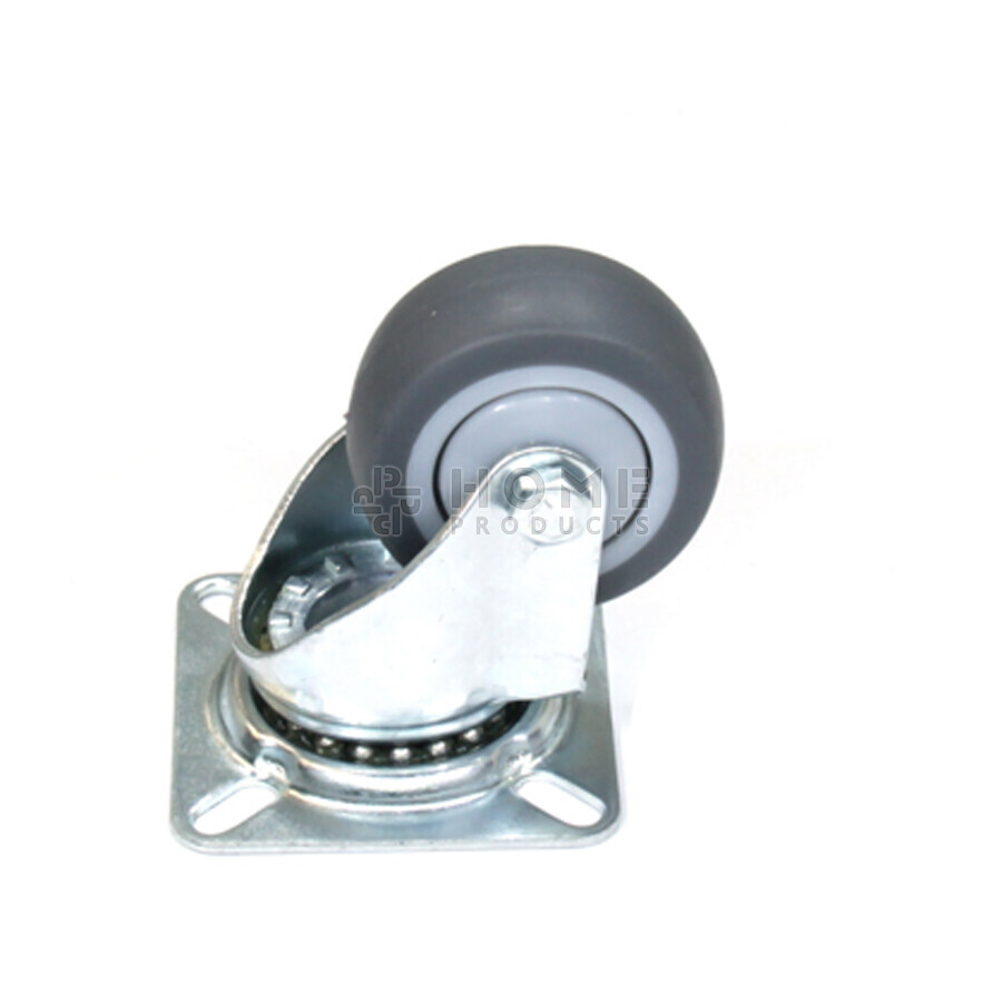 Wheel: gray non-marking thermoplastic rubber tire, with polypropylene wheel core, precision ball bearing,