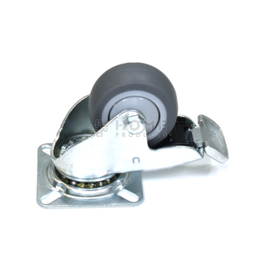 Swivel castor with brake, 50 mm diameter, non-marking rubber tire, load capacity up to 50 kg